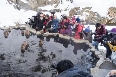 Keywords: snow monkeys nagano japan onsen village jigokudani park yamanouchi monkey japanese macaques outdoor Who are the real monkeys in this scene? Who are the real monkeys in this scene?