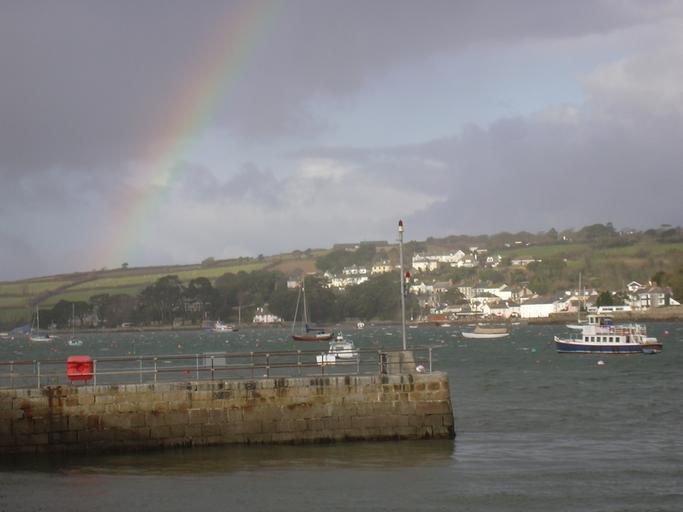Keywords: DSCN2008FlushingRainbow.jpg Flushing from Fish Strand Quay Falmouth with rainbow Own 2007-12-07 Vernon39 Falmouth Cornwall Flushing Cornwall Photographs by Vernon White