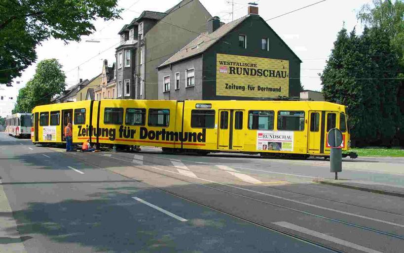 | Keywords: DSW21 403 Wambel Schleife.jpg Am 11 05 2003 entgleiste zum zweiten Mal innerhalb weniger Tage ein Wagen der Linie 403 in Fahrtrichtung Wickede an der Einfahrt zur Schleife An den Börten ehem Brackel Schleife in Dortmund-Brackel Hierbei handelt es sich um den N8C 132 Hier zu erkennen sind die Mitarbeiter der Dortmunder Stadtwerke die sich bemühen das dritte Fahrgestell wieder in seine ursprüngliche Position zu bringen Während dieser Aktion die mehrere Stunden in Anspruch genommen hat wurde ein Schienenersatzverkehr mit Bussen eingerichtet Jörg Feldkamp N8C Dortmund Tram accidents Dortmund Yellow rail vehicles 2003 in tram transport in Germany |