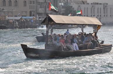 Keywords: dubai ferry harbor city water boat vessel emirates transportation uae sea travel wooden passengers smoky misty tour tourist