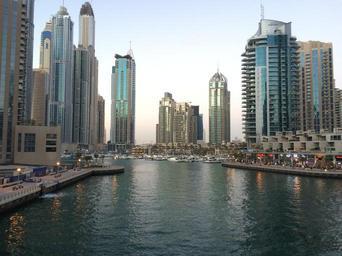 Keywords: dubai skyscraper water emirates travel gulf evening