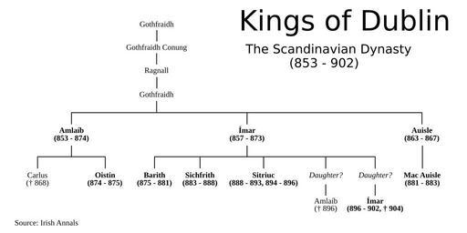 Keywords: Dublindynasty902.svg en Genealogical tree of the Scandinavian ruling dynasty of Dublin from 853 to 902 according to Irish annalistic sources Own Erigena 2009-05-14 Dublin History of Dublin Genealogy SVG
