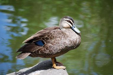 Keywords: duck bird poultry wildfowl fowl perched rock water