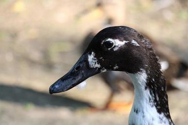 Keywords: duck black white close macro bill head water bird pinnate nature bird plumage animal