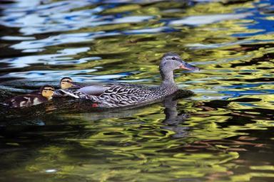 Keywords: duck ducklings lake water young mother female swim brown animal birds
