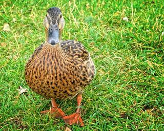 Keywords: duck mallard anas platyrhynchos female water bird duck bird bird water meadow grass stand look