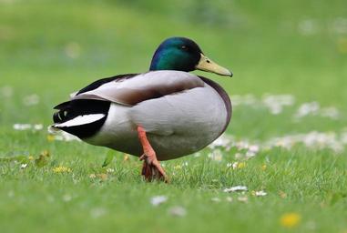Keywords: duck mallard grass flowers waterfowl male