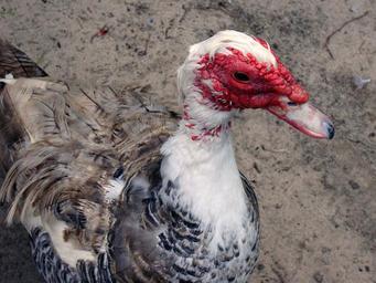 Keywords: duck muscovy duck cairina moschata muscovy cairina moschata bird nature wildlife beak red white black fowl feather head plumage bill animal face