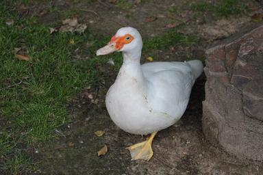 Keywords: duck white green red earth grass white duck animal farm idyll close water bird bird spring nature fauna