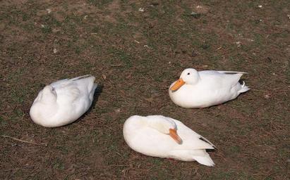 Keywords: ducks 3 three white duck domestic ducks water bird idyll sleep doze poultry