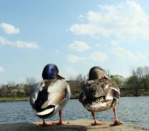 Keywords: ducks male female water looking right nature