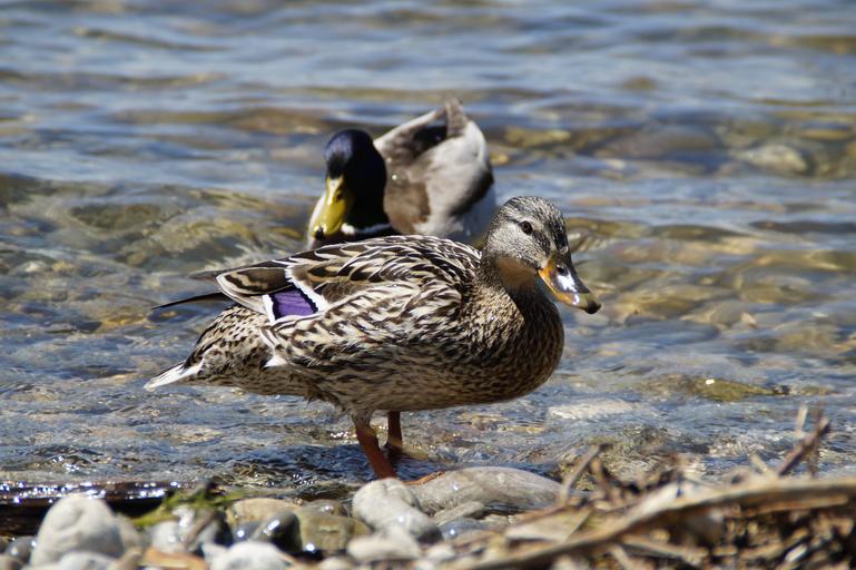 Keywords: ducks mallards birds duck bird water bird aquatic animal animal swim lake pond water animal world nature poultry female woman feather plumage swimming duck waters lakeside pair couple togetherness