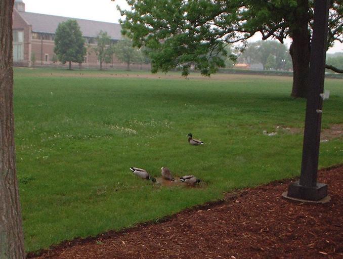 Keywords: Ducks on campus.jpg Occasionally after big rains in the spring ducks show up at some of the soggier parts of campus 2003-05-08 own assumed Bachrach44 Washington University in St Louis Low quality images of ducks