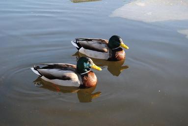 Keywords: ducks water nature bird wildlife animal wild river waterfowl lake swimming head green colorful female beak feather floating wings color