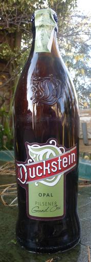 Keywords: DucksteinOpal.jpg en A bottle of Duckstein Opal Pilsener 2016-12-10 13 49 55 own Miguel Andrade other versions cc-zero Beers of Hamburg Beer bottles brown glass