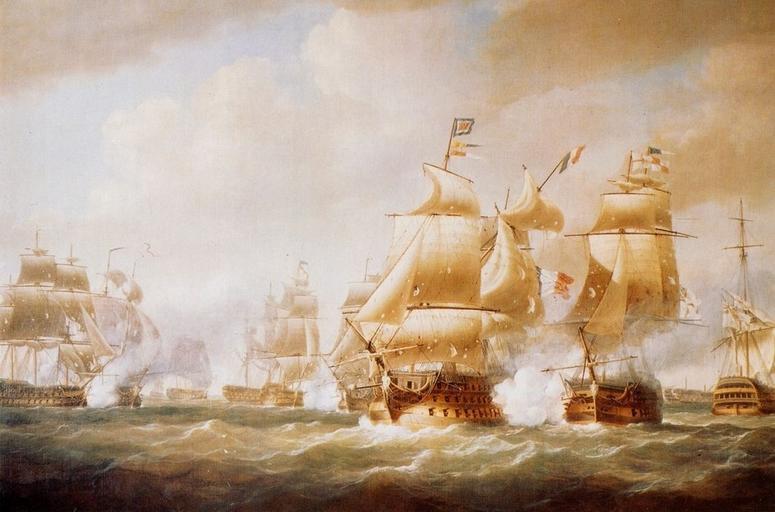 | Keywords: Duckworth's Action off San Domingo, 6 February 1806.jpg Following Nelson's victory at Trafalgar in 1805 Sir John Duckworth left the blockade of Cadiz and pursued a French squadron to the Caribbean where he defeated it off San Domingo on the 6 February 1806 With six ships of the line and two frigates he was lying off St Kitts watering and refitting his squadron when he heard on that three French ships of the line were making for San Domingo A force of nine French ships were found at anchor in San Domingo Roads whence they slipped their cables and made sail in a westerly direction forming a line of battle close inshore The British closed in on them in two lines to cut them off The action began when 'Superb' 74 guns under the command of Sir John Duckworth fired at the French 'Alexandre' 80 guns In the action that followed the French ships' Alexandre' Brave' 74 guns and 'Jupiter' 74 guns were taken while the 'Diomede' 72 guns and the huge 'Imperial' 120 guns ran themselves ashore and were wrecked The three French frigates 'Felicite' 36 guns 'Comete' 36 guns and 'Diligente' 18 guns escaped The 'Imperial' in port-bow view is in the right centre foreground of the painting engaged to port with the 'Superb' nearly bow on The 'Imperial's' main topmast is falling To the right and beyond is the partly dismasted 'Northumberland' 74 guns in starboard-quarter view Beyond her in the extreme right background is the British 'Spencer' 74 guns stern on and in the background between the 'Superb 'and 'Northumberland' is the dismasted 'Brave ' In the centre middle ground in port-bow view and partly masked by the 'Imperial 'is the 'Diomede' being engaged to starboard by the British 'Canopus' 80 guns in starboard-bow view Astern of her the stern half of the British 'Atlas' 74 guns is visible followed by the 'Agamemnon' 64 guns in starboard-bow view with the 'Alexandre' in starboard-quarter view in the distance In the extreme left of the picture the British 'Donegal' 74 guns in starboard-bow view is engaging the French 'Jupiter' 74 guns to port There is a fresh breeze and a choppy sea This painting was a large-scale commission for Admiral Charles Middleton Lord Barham and records an event which took place while he was First Lord of the Admiralty 1805-06 Pocock made many preparatory sketches for the commission giving full details of this action in accordance with his usual practice of ensuring accuracy Pocock was born and brought up in Bristol went to sea at the age of 17 and rose to command several merchant ships Although he only took up painting as a profession in his early forties he became extremely successful receiving commissions from naval commanders anxious to have accurate portrayals of actions and ships By the age of 80 Pocock had recorded nearly forty years of maritime history demonstrating a meticulous understanding of shipping and rigging with close attention to detail Signed and dated 'N Pocock 1808' http //www nmm ac uk/collections/explore/object cfm ID BHC0571 The National Maritime Museum 1808 Creator Nicholas Pocock 128px HMS Donegal engaging Jupiter at San Domingo png PD-old-100 ImageNote 1 695 167 141 363 946 625 2 HMS Superb ImageNoteEnd 1 ImageNote 2 417 136 277 393 946 625 2 LImpérial ImageNoteEnd 2 19th-century sailing ships in paintings 19th-century paintings of naval battles San Domingo Battle of San Domingo Nicholas Pocock Ships under sail HMS Superb ship 1798 1808 paintings |