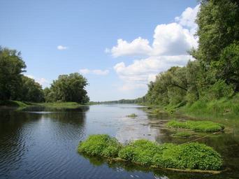 Keywords: duct water river trees greens the islet sun bright sky blue clouds white