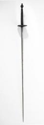 | Keywords: Duellvärja - Livrustkammaren - 39603.tif Fäste av mörkanlöpt stål Knapp med oval kontur och runt tvärsnitt ornerad med rombiskt rutmönster i relief Nitknapp hög med insvängd hals Parerplåtar symmetriskt njurformiga med ytmönster av genombrutna runda hål Kavel med mjukt rektangulärt tvärsnitt klädd med gråsvart fiskskinn glest lindad med mörkanlöpt tunn tvinnad ståltråd Lindningen tätare upptill och nedtill <br/><br/>Klinga treeggad s k stukatklinga Vid klingbasen två otydliga stämplar varav den ena ett krönt B Nedtill på klingans bredsida etsat i skrivstil Manuf re de Klingenthal Coulaux ainé Co original caption duellvärja - LRK 5565 early other date century 19 steel b12 - blankvapen - fäste och klinga material stål size mm 1070 size mm 85 size mm 870 klinga size mm 20 klinga g 360 LRK Fäktning på lek och allvar place of origin Klingenthal original filename lm_dig0388 42189 inventory number LRK 5565 39603 CC-BY-SA Göran Schmidt Göran Schmidt Media contributed by LSH unmatched material Media contributed by LSH dim-with multiple size templates Media contributed by LSH unmatched creator Sword images from Livrustkammaren Media contributed by LSH 2013-10 |