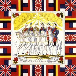| Keywords: Dufy Les Allies.jpg en Les Alliés Printed handkerchief designed by Raoul Dufy published by Bianchini Férier and sold by Charvet in 1915 The pattern was printed by Bianchini Férier under reference n° 51412 and registered on May 15 1915 Raoul Dufy transferred all his copyrights to Bianchini Férier by contract Anne Toulonnas et Jack Vidal Raoul Dufy l'oeuvre en soie Barthélémy 1998 p 41-42 ; see also http //www culture gouv fr/public/mistral/mersri_fr ACTION CHERCHER FIELD_1 REF VALUE_1 IA69000032 Inventaire général du patrimoine culturel Reproduced in Raoul Dufy du motif à la couleur Musée Malraux Le Havre 1993 p 93 CNAM Inv AM 10892 Designed by Raoul Dufy produced by Bianchini-Férier sold by Charvet 1915 PD-old For the application of the French copyright law as the copyright was owned by a company its term is calculated from January 1 of 1916 the year following the initial release Charvet Place Vendôme Raoul Dufy |
