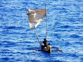 Keywords: dugout canoe homemade sail sail tropical bay sea boat fishermen