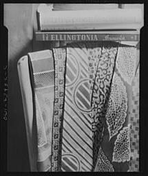 | Keywords: Duke Ellington - Hurricane Ballroom - ties.jpg Colorful ties belonging to Duke Ellington Library of Congress Prints and Photographs Division Farm Security Administration - Office of War Information Photograph Collection http //hdl loc gov/loc pnp/fsa 8d13209 1943-04 Gordon Parks Farm Security Administration PD http //www loc gov/rr/print/res/268_parks html LOC-image fsa 8d13209 Duke Ellington Neckties 1940s fashion Photographs by Gordon Parks PD-USGov | ||||