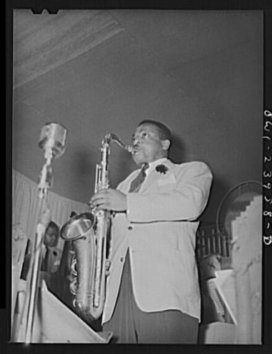 | Keywords: Duke Ellington - Hurricane Ballroom - tenor saxophone.jpg  Tenor saxophone player with Duke Ellington's orchestra at the Hurricane Library of Congress Prints and Photographs Division Farm Security Administration - Office of War Information Photograph Collection http //hdl loc gov/loc pnp/fsa 8d13235 1943-04 Gordon Parks Farm Security Administration PD http //www loc gov/rr/print/res/268_parks html LOC-image fsa 8d13235 Duke Ellington 1940s fashion PD-USGov ImageNote 1 16 3 411 538 431 560 2 Ben Webster - tenor saxophone ImageNoteEnd 1  |