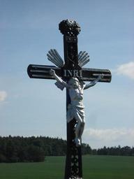 | Keywords: Dukovany Kříž04 Čurdův detail01.jpg cs 4 kříž na cestě do Jamolic- Čurdův Nachází se na odbočce z hlavní cesty směrem k elektrárně Havránek Je umístěn na poli zvaném Vinohrádky Spodní část kříže je kamenná korpus je litinový Pod Kristem je oválná litinová tabulka na které je nápis Já jsem cesta pravda a život Kříž nechali postavit manželé Čurdovi Bylo to v roce 1869 když se manželům Čurdovým Martinu a jeho ženě roz Hudečkové M z Lukova narodil syn Václav Kříž byl několikrát shozen ale vždy opraven vlastní author 1869 Crosses in Vysočina Region Dukovany |