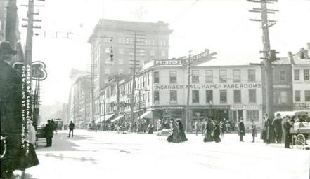 | Keywords: hamilton hamont outdoor building architecture snow George Barnes (1812-1868) opened a book and office supply store on King Street East called George Barnes & Company about 1845. As well as being the first bookstore opened in Hamilton it was one of the earliest opened in Ontario. This store proved very successful and in 1868 Barnes moved it to 17 James Street North, the very heart of Hamilton’s commercial district at that time and immediately across the street from Hamilton’s City Hall. This site was to prove extremely successful for the company. In 1869 Robert Duncan and John C. Stuart acquired the company which became known as Duncan Stuart & Company. In 1878 Duncan became the sole proprietor when he bought out John C. Stuart. The company then became known as Robert Duncan and Company. In 1883 Duncan added a printing firm to the rear of the store which was known as Duncan Lithographing Company. As well as books the store dealt in office and social stationary, magazines, wall paper and paint. The proposed re-development of the downtown core and the construction of Lloyd D. Jackson Square saw the expropriation of many of the core’s oldest and most established businesses including Robert Duncan and Company. In 1969, just over 100 years after its establishment on the site Duncan’s was forced to move to Park Street. 021-32022194827115 George Barnes (1812-1868) opened a book and office supply store on King Street East called George Barnes & Company about 1845. As well as being the first bookstore opened in Hamilton it was one of the earliest opened in Ontario. This store proved very successful and in 1868 Barnes moved it to 17 James Street North, the very heart of Hamilton’s commercial district at that time and immediately across the street from Hamilton’s City Hall. This site was to prove extremely successful for the company. In 1869 Robert Duncan and John C. Stuart acquired the company which became known as Duncan Stuart & Company. In 1878 Duncan became the sole proprietor when he bought out John C. Stuart. The company then became known as Robert Duncan and Company. In 1883 Duncan added a printing firm to the rear of the store which was known as Duncan Lithographing Company. As well as books the store dealt in office and social stationary, magazines, wall paper and paint. The proposed re-development of the downtown core and the construction of Lloyd D. Jackson Square saw the expropriation of many of the core’s oldest and most established businesses including Robert Duncan and Company. In 1969, just over 100 years after its establishment on the site Duncan’s was forced to move to Park Street. 021-32022194827115 |