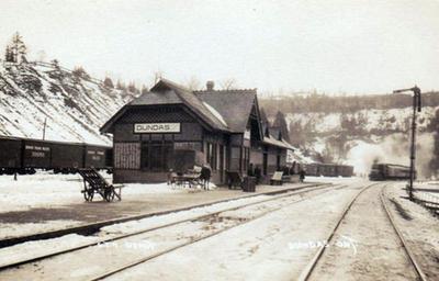 Keywords: 43 16N 79 58W Dundas railway station, 1910, was a passenger station in Dundas, Ontario, Canada. Opened 1864. Closed 1981.