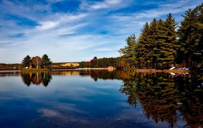 Keywords: dunning lake farmington connecticut sky clouds seasons fall autumn foliage forest trees woods water reflections idyllic scenic nature outdoors country countryside rural beautiful hdr