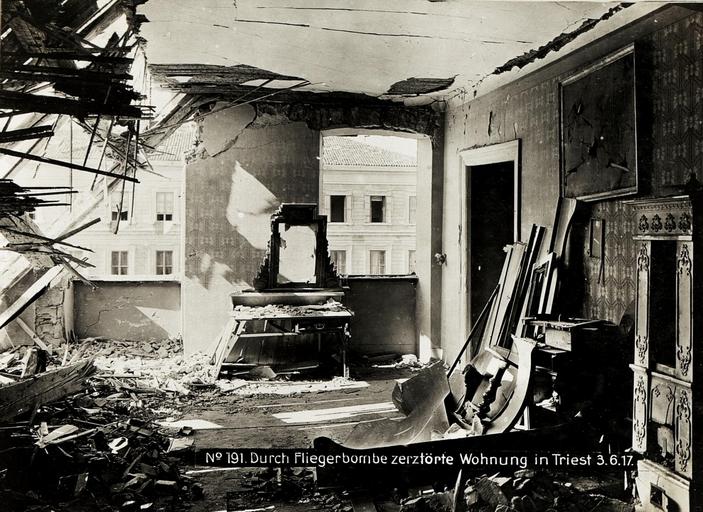 | Keywords: Durch Fliegerbombe zerstörte Wohnung in Triest (BildID 15595664).jpg depicted place austria de K u k Kriegspressequartier Lichtbildstelle - Wien credit line Österreichische Nationalbibliothek - Austrian National Library http //www bildarchivaustria at/Preview/15595664 jpg<br>Catalog http //www bildarchivaustria at/Pages/ImageDetail aspx p_iBildID 15595664 accession number WK1/ALB070/20269 http //creativecommons org/publicdomain/mark/1 0/ el Α΄ Παγκόσμιος Πόλεμος en World War I zh 第 次世界大战 ca Primera Guerra Mundial it Prima guerra mondiale cs První světová válka cy Y Rhyfel Byd Cyntaf hy Առաջին համաշխա հային պատե ազմ ga An Chéad Chogadh Domhanda eu Lehen Mundu Gerra et Esimene maailmasõda gl Primeira Guerra Mundial es Primera Guerra Mundial ru Пе вая ми овая война az Birinci dünya müharibəsi pt Primeira Guerra Mundial no Første verdenskrig tr I Dünya Savaşı lv Pirmais pasaules karš lt Pirmasis pasaulinis karas ro Primul Război Mondial ar الحرب العالمية الأولى is Fyrri heimsstyrjöldin pl I wojna światowa yi ערשטע ווע ט מ חמה be Пе шая сусветная вайна fr Première Guerre mondiale bg Пъ ва световна война hr Prvi svjetski rat de Erster Weltkrieg hu Első világháború hi प्रथम विश्वयुद्ध bs Prvi svjetski rat fi Ensimmäinen maailmansota da 1 verdenskrig ja 第 次世界大戦 he מ חמת העו הראשונה ka პირველი მს ფლი მი sr П ви светски ат sq Lufta e Parë Botërore ko 1차 세계 전 sv Första världskriget mk П ва светска војна sk Prvá svetová vojna gd An Cogadh Mòr uk Пе ша світова війна sl Prva svetovna vojna PD-old-80-1923 Kriegspressequartier Alben 1914 - 1918 Images uploaded by Fæ Trieste in the 1910s |