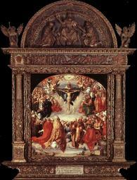View Original:durer_adoration_holy_trinity_landauer_altar_1511.jpg (850x1117)