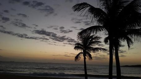 Keywords: dusk beach coconut tree mar twilight sky