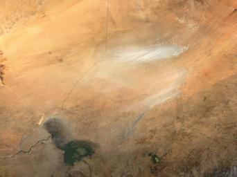 | Keywords: Dust Storm near Lake Chad, Image of the Day DVIDS844465.jpg en Dust from the Bodele depression in Chad Africa image right is blowing across the Lake Chad region in this modis gsfc nasa gov Moderate Resolution Imaging Spectroradiometer MODIS image taken by the terra nasa gov/ Terra satellite on November 10 2003 As recently as the 1960s Lake Chad filled an area in the depression roughly the size of Lake Erie in North America but lack of rain and increased demand for irrigation water have shrunk the shorelines of the lake leaving much of the Bodele depression dry Now dust storms in the Bodele depression are common The low-lying area is a major source of windblown dust in Europe the Middle East and the Western Hemisphere Seen as streaks of white against the orange desert sands in this true-color image the dust partially obscures the northern shores of Lake Chad lower left from view NASA Identifier Chad_2003314 2011-06-30 Glenn Research Center https //www dvidshub net/image/844465 844465 2013-02-08 10 26 WASHINGTON D C US PD-USGov Images from DoD uploaded by Fæ Dust storms Satellite pictures of Chad Lake Chad Satellite pictures of lakes NASA MODIS images of Africa 2003 in Africa |