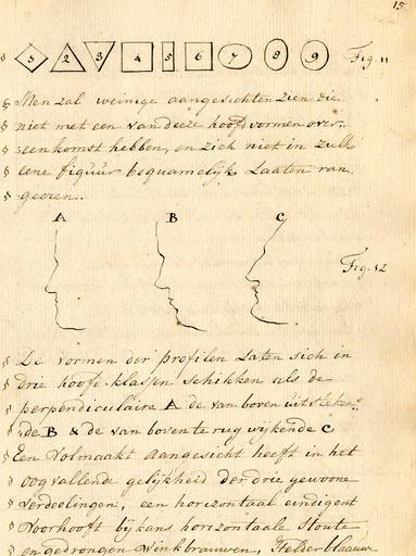 | Keywords: Dutch p15.jpg en Anonymous tise on physiognomy Netherlands ca 1790 Physiognomy is the science of relating an individual's character personality and temperament to the shape of his or her face head and/or body The theories behind it go back to Hippocrates who believed that physical characteristics of the human body revealed personality traits; Aristotle performed studies on how hair limbs and facial features predicted personality and temperament Such theories thrived throughout the Middle Ages and the Renaissance and the noted Girolamo Cardano 1501-1576 was one of its main proponents By the 18th century the study of physiognomy was still taken very seriously as a medical topic with important additions to the field made by Johann Caspar Lavater 1741-1801 Franz Josef Gall 1758-1828 attempted to make its study even more scientific by measuring human and animal craniums to find correlations between skull shape and behavior founding the field of phrenology The author of this fine manuscript treatise and sketchbook on physiognomy is unknown The text is written in Dutch and was probably composed in the 1790s; it is possible that it was created as a dissertation by a medical student Further Reading Hagner M Prolegomena to a history of radical brains in the nineteenth century physiognomics phrenology brain anatomy Physis Riv Int Stor Sci 1999; 36 2 321-38 Howells J G ; and M L Osborn A reference companion to the history of psychology Westport CT Greenwood Press 1984 Jenkinson J Face facts a history of physiognomy from ancient Mesopotamia to the end of the 19th century J Biocommun 1997; 24 3 2-7 An example of the 20th-century clinical literature on physiognomy Paterson D G Physique and intellect New York The Century Company 1930 2013-11-18 09 57 41 https //www nlm nih gov/exhibition/historicalanatomies/dutch_home html Anonymous tise on physiognomy Netherlands ca 1790 PD-Art Anatomy Historical anatomy Uploaded with UploadWizard Physiognomy |