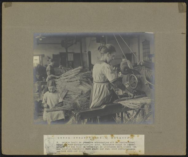 | Keywords: nationaal archief nationaal archief nationaalarchief iconclass:n=47h6 factory straw kinderarbeid child labor childlabor meisjes girls Beschrijving: Meisjes in de Dutch Straw Works Company (de strohulzenfabriek) te Helmond. Het ene meisje haalt de stromatjes uit de naaimachine, de andere buigt de matjes tot huls en bevestigt de uiteinden door middel van een touwtje. De productie ligt op gemiddeld 3000 stuks per dag Datum: Onbekend Vervaardiger: J.D. Filarski Formaat: 17.5 x 23.5 cm Bestanddeelnummer: 2.24.03_2256_256-1579 Fotocollectie: Arbeidsinspectie Auteursrechten: Nationaal Archief Voor meer informatie over het Nationaal Archief: www.nationaalarchief.nl Voor meer foto's uit deze en andere collecties, bezoek onze Beeldbank: beeldbank.nationaalarchief.nl/ U kunt ons helpen onze kennis van de fotocollecties te verrijken door tags en commentaren toe te voegen. Herkent u mensen of locaties of heeft u een bijzonder verhaal te vertellen bij één van de foto’s, laat dan een reactie achter (als u ingelogd bent bij Flickr) of stuur een mailtje naar: flickrthecommons@nationaalarchief.nl! Beschrijving: Meisjes in de Dutch Straw Works Company (de strohulzenfabriek) te Helmond. Het ene meisje haalt de stromatjes uit de naaimachine, de andere buigt de matjes tot huls en bevestigt de uiteinden door middel van een touwtje. De productie ligt op gemiddeld 3000 stuks per dag Datum: Onbekend Vervaardiger: J.D. Filarski Formaat: 17.5 x 23.5 cm Bestanddeelnummer: 2.24.03_2256_256-1579 Fotocollectie: Arbeidsinspectie Auteursrechten: Nationaal Archief Voor meer informatie over het Nationaal Archief: www.nationaalarchief.nl Voor meer foto's uit deze en andere collecties, bezoek onze Beeldbank: beeldbank.nationaalarchief.nl/ U kunt ons helpen onze kennis van de fotocollecties te verrijken door tags en commentaren toe te voegen. Herkent u mensen of locaties of heeft u een bijzonder verhaal te vertellen bij één van de foto’s, laat dan een reactie achter (als u ingelogd bent bij Flickr) of stuur een mailtje naar: flickrthecommons@nationaalarchief.nl! |