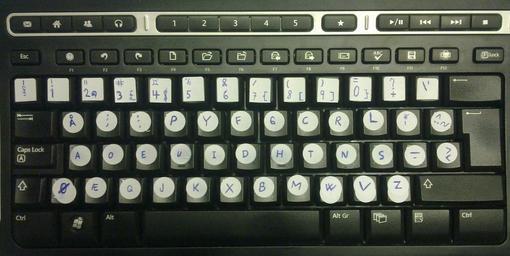 Keywords: Dvorak klistrelapper.jpg no Et Dvorak-tastatur konvertert fra QWERTY-tastatur ved hjelp av klistremerker 2011-10-30 own Oddiss1985 cc-zero Uploaded with UploadWizard Dvorak keyboard layouts