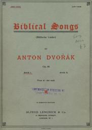 | Keywords: Dvorak's Biblicke Pisne i-1.jpg Dvorak's_Biblicke_Pisne_i- jpg 2 Antonín Dvořák's Biblícké Písně Biblical Songs Op 99 1894 Book 1 containing Songs 1-5 While Dvorak later orchestrated the work this the complete original piano-and-voice version While the massacre of the original music to fit the German and English is appalling it does contain the original Czech and the original music for the Czech The German and English should probably be considered only as a translation This is the first five songs out of ten the other five are printed in a second volume I have not yet tracked down I haven't been able to find Book 2 unfortunately 1895 copy in my own possession The only copyright claimed on the sheet music itself is to N Simrock which is a publishing house Antonín Dvořák 1841 1904 PD-Old Original Czech From http //music ibiblio org/pub/multimedia/pandora/vorbis/contrib/Marta_Chaloupka_Live/Czech notes accompanying the Pandora Music recording 1 Psalm 97 2-6 Oblak a mrákota jest vůkol Něho spravedlnost a soud základ trůnu Jeho Oheň předchází jej a zapaluje vůkol nepřátele Jeho Zasvěcujíť se po okršlku světa blýskání Jeho; to vidouc země děsí se Hory jako vosk rozplývají se před obličejem Hospodina panovníka vší země a slávu jeho spatřují všichni národové 2 Psalms 119 114-117 119 120 Skrýše má a pavéza má Ty jsi na slovo Tvé očekávám Odstuptež ode mne nešlechetníci abych ostříhal přikázaní Boha svého Posiluj mne bych zachován byl a patřil k ustanovením Tvým ustavičně Děsí se strachem před Tebou tělo mé; nebo soudů Tvých bojím se náramně 3 Psams 55 1 2 4/5 6 7 8 Slyš ó Bože Slyš modlitbu mou a neskrývej se před prosbou mou Pozoruj a vyslyš mne neboť naříkám v úpění svém a kormoutím se Srdce mé tesklí ve mně a strachové smrti přišli na mne a hrůza přikvačila mne I řekl jsem Ó bych měl křídla jako holubice zaletěl bych a poodpočinul Aj daleko bych se vzdálil a přebýval bych na poušti Pospíšil bych ujíti větru prudkému a vichřici 4 Psalms 23 1-4 Hospodin jest můj pastýř nebudu míti nedostatku Na pastvách zelených pase mne k vodám tichým mne přivodí Duši mou občerstvuje vodí mne po stezkách spravedlnosti pro jméno své Byť mi se dostalo jíti přes údolí stínu smrti nebuduť se báti zlého nebo Ty se mnou jsi; a prut Tvůj a hůl Tvá toť mne potěšuje 5 Psalms 144 9 145 1-3 5 6 Bože Bože píseň novou zpívati budu Tobě na loutně a žalmy tobě prozpěvovati Na každý den dobrořečiti budu Tobě a chváliti jméno Tvé na věky věků Hospodin jistě veliký jest a vší chvály hodný a velikost jeho nemůž vystižena býti O slávě a kráse a velebnosti Tvé i o věcech Tvých předivných mluviti budu A moc přehrozných skutků Tvých vsichni rozhlašovati budou; i já důstojnost Tvou budu vypravovati 6 Psalms 61 1 3 4 63 1 4/5 Slyš ó Bože volání mé pozoruj modlitby mé Nebo jsi býval útočiště mé a pevná věže před tváří nepřítele Buduť bydliti v stánku tvém na věky schráním se v skrýši křídel tvých Bože Bůh silný můj ty jsi tebeť hned v jitře hledám Tebe žízní duše má po tobě touží tělo mé v zemi žíznivé a vyprahlé v níž není vody A tak abych tobě dobrořečil a s radostným rtů prozpěvováním chválila by tě ústa má 7 Psalms 137 1-5 Při řekách Babylonských tam jsme sedávali a plakávali rozpomínajíce se na Sion Na vrbí v té zemi zavěšovali jsme citary své když se tam dotazovali nás ti kteříž nás zajali na slova písničky říkajíce Zpívejte nám některou píseň Sionskou Odpovídali jsme Kterakž bychom mohli zpívati píseň Hospodinovu v zemi cizozemců Jestliže se zapomenu na tebe ó Jeruzaléme ó zapomeniž i pravice má umění svého 8 Psalms 25 16-18 20 Popatřiž na mne a smiluj se nade mnou neboť jsem opuštěný a strápený Soužení srdce mého rozmnožují se z úzkostí mých vyveď mne z úzkostí mých vyveď mne Smiluj se nade mnou Viz trápení mé a bídu mou a odpusť všecky hříchy mé Ostříhej duše mé a vytrhni mne ať nejsem zahanben neboť v tebe doufám neboť v tebe doufám 9 Psalms 121 1-4 Pozdvihuji očí svých k horám odkud by mi přišla pomoc Pomoc má jest od Hospodina kterýž učinil nebe i zemi Nedopustíť aby se pohnouti měla noha tvá nebo nedřímeť strážný tvůj Aj nedřímeť ovšem nespí ten kterýž ostříhá Izraele 10 Psalms 98 1 4/5 7 8 96 12/11 Zpívejte Hospodinu píseň novou neboť jest divné věci učinil Zvuk vydejte prozpěvujte a žalmy zpívejte Zvuč moře i to což v něm jest okršlek světa i ti což na něm bydlí Řeky rukama plésejte spolu s nimi i hory prozpěvujte Plésej pole a vše což na něm plésej země zvuč i moře i což v něm jest Biblické písně Biblické písně 1894 Christianity in the Czech Republic Czech language |