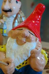Keywords: dwarf garden gnome fig funny making a face cap red bart relaxed quaint porcelain figurine porcelain