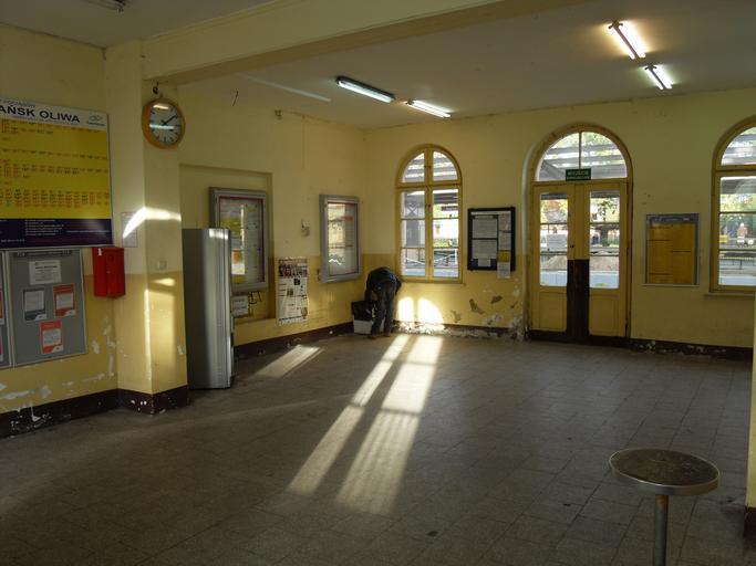 Keywords: Dworzec Gdańsk Oliwa (2).JPG pl Dworzec Gdańsk Oliwa sala główna own Artur Andrzej 2011-10-15 Cc-zero Gdańsk Oliwa train station Building interiors in Gdańsk 2011 in Gdańsk