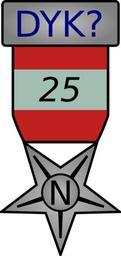 | Keywords: Dyk25N.svg own User Certes Proposed award for Award for 25 DYK nominations at Did you know Own work by Certes following request at WP GL/I Certes en Original upload log en wikipedia FtCG page en wikipedia Dyk25N svg wikitable Date/Time Dimensions User Comment - 16 09 2 January 2010 203 × 431 6 181 bytes Certes w en <nowiki> Proposed award for Award for 25 DYK nominations at Own work by following request at WP GL/I </nowiki> Wikipedia Did you know awards | ||||