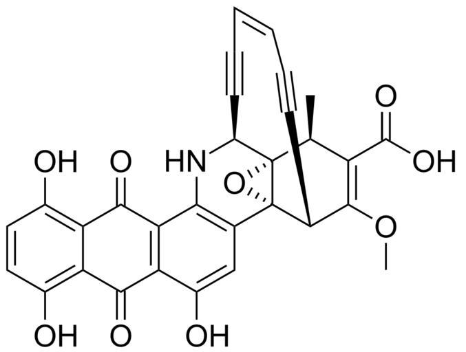 Keywords: Dynemicin A.svg Chemical structure of dynemicin A Own 16 38 23 May 2011 UTC Ed Edgar181 Enediynes Epoxides Carboxylic acids Polyphenols