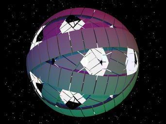 | Keywords: Dyson rings.PNG Dyson rings forming a stable Dyson swarm but making it look as similar to a Dyson sphere and Niven ring as possible Individual objects are unrealistically large to show their shape Each ring can be replaced by multiple rings in http //www burtleburtle net/bob/scifi/swarmb html this way http //www burtleburtle net/bob/scifi/dyson html see also For a stable orbit a ring can be of individual objects or like this to save on thrusters thumb Google images -> brain -> Povray 3 6 using included polyhedron file 2007-07-30 Arnero And I do not want to see any discussion about how many light a swarm can catch at least this image suggests all <pre> // Persistence Of Vision raytracer version 3 5 sample file // By Chris Young // This image contains an example of every shape from SHAPES2 INC // // -w320 -h240 // -w800 -h600 +a0 3 version 3 1; global_settings assumed_gamma 2 2 include colors inc include shapes inc include shapes2 inc // include stars inc // place all settings of globally influenced features here global_settings // GLOBAL ITEM S // used in global_settings sets image gamma in relation to display gamma assumed_gamma 2 0 / declare Starfield2 texture pigment granite color_map 0 000 0 270 color rgb < 0 0 0> color rgb < 0 0 0> 0 270 0 285 color rgb < 5 5 4> color rgb < 8 8 4> 0 285 0 470 color rgb < 0 0 0> color rgb < 0 0 0> 0 470 0 485 color rgb < 4 4 5> color rgb < 4 4 8> 0 485 0 680 color rgb < 0 0 0> color rgb < 0 0 0> 0 680 0 695 color rgb < 5 4 4> color rgb < 8 4 4> 0 695 0 880 color rgb < 0 0 0> color rgb < 0 0 0> 0 880 0 895 color rgb < 5 5 5> color rgb < 1 1 1> 0 895 1 000 color rgb < 0 0 0> color rgb < 0 0 0> turbulence 0 8 sine_wave scale 10 // 5 finish diffuse 0 ambient 1 4 plane z 10 texture Starfield2 // put the right arrray name here / declare R1 seed 0 ; // initialize random number streams declare R2 seed 12345 ; // Create 10 balls along X axis from 0 to 9 declare BallCount 0; while BallCount < 1000 // the rand function creates a reproducible sequence // of pseudo-random numbers between 0 0 and 1 0 // place sphere with random radius at random position // use different random number streams for position and radius sphere < rand R1 -0 5 12 rand R1 -0 5 14 13> rand R2 /40 // 0 0> declare re00 < rand R1 rand R1 rand R1 >; pigment // rgb - Red Green Blue color shortcut color rgb re00/max re00 x re00 y re00 z finish diffuse 0 ambient 1 4 declare BallCount BallCount+1; // increment our counter end camera location <0 0 -30>/8 direction <0 0 1 5> look_at <0 0 0> up <1 0 0> right < 0 4/3 0 > light_source <800 200 -1000> color Red 0 6 light_source <-800 200 -1000> color Green 0 6 light_source <0 -200 -1000> color Blue 0 6 light_source <0 0 -0> color White 1 4 // put this inside a light_source to give it a visible appearance looks_like sphere 0 0 1 pigment White 10 declare Icosahedron intersection plane -z 1 rotate <52 6625 0 0> plane -z 1 rotate <52 6625 -72 0> plane -z 1 rotate <52 6625 -144 0> plane -z 1 rotate <52 6625 -216 0> plane -z 1 rotate <52 6625 -288 0> plane -z 1 rotate <10 8125 0 0> plane -z 1 rotate <10 8125 -72 0> plane -z 1 rotate <10 8125 -144 0> plane -z 1 rotate <10 8125 -216 0> plane -z 1 rotate <10 8125 -288 0> plane -z 1 rotate <-52 6625 -36 0> plane -z 1 rotate <-52 6625 -108 0> plane -z 1 rotate <-52 6625 -180 0> plane -z 1 rotate <-52 6625 -252 0> plane -z 1 rotate <-52 6625 -324 0> plane -z 1 rotate <-10 8125 -36 0> plane -z 1 rotate <-10 8125 -108 0> plane -z 1 rotate <-10 8125 -180 0> plane -z 1 rotate <-10 8125 -252 0> plane -z 1 rotate <-10 8125 -324 0> bounded_by sphere 0 1 2585 / object Icosahedron pigment Magenta translate <2 1 3 2> / // note that declare of float vector and color require semicolon at the end declare Dyson_Ring // CSG difference subtract intersections of shapes 2 N from Shape1 difference // create a sphere shape sphere <0 0 0> // center of sphere <X Y Z> 1 0 // radius of sphere // scale <1 2 1> // < Note Spheres can become ellipses by uneven scaling // Capped Cylinder closed or open ended // cylinder <END1> <END2> RADIUS open // END1 coord of one end of cylinder // END2 coord of other end // RADIUS size of cylinder // open if present cylinder is hollow else capped cylinder -1 1 z +1 1 z 0 988 // open // note that declare of float vector and color require semicolon at the end declare k 0; while k < 180 box <-0 005 -1 1 -1 1> <0 005 1 1 1 1> // rotate shape or texture around <0 0 0> relative to current orientation // example rotate 30 x rotate <0 0 k> // <dX dY dZ> in degrees declare k k+10; // increment our counter end bounded_by sphere 0 1 01 object Dyson_Ring pigment White rotate <52 6625 0 0> scale 1 00 object Dyson_Ring pigment White rotate <52 6625 -72 0> scale 1 01 object Dyson_Ring pigment White rotate <52 6625 -144 0> scale 1 02 object Dyson_Ring pigment White rotate <52 6625 -216 0> scale 1 03 object Dyson_Ring pigment White rotate <52 6625 -288 0> scale 1 04 object Dyson_Ring pigment White rotate <10 8125 0 0> scale 1 05 object Dyson_Ring pigment White rotate <10 8125 -72 0> scale 1 06 object Dyson_Ring pigment White rotate <10 8125 -144 0> scale 1 07 object Dyson_Ring pigment White rotate <10 8125 -216 0> scale 1 08 object Dyson_Ring pigment White rotate <10 8125 -288 0> scale 1 09 </pre> Freeman Dyson Space colonization Created with Persistence of Vision |