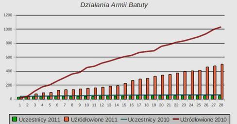 Keywords: Działania Armii Batuty 2011.png pl Liczba uczestników akcji batuta oraz uźródłowionych haseł w 2011 Porównanie z rokiem 2010 own Przykuta 2011-02-16 Cc-zero Polish Wikipedia statistics BATUTA