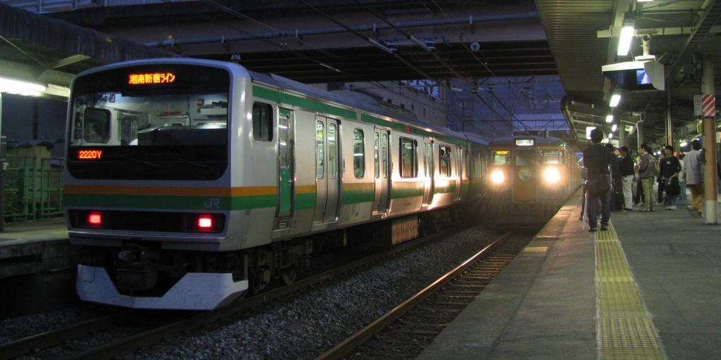 | Keywords: E231 and 115 Ageo 20091101.jpg JR East E231 series and 115 series electric multiple units at Ageo Station 上尾駅に並ぶ新旧の高崎線電車 左(3番線) E231系1000番台(クハE231形8000番台)湘南新宿ライン南行 右(2番線) 115系1000番台(クモハ115形1000番台 クモハ115-1035) 下り回 臨時快 両毛線120周年号 (桐生発 上尾ゆき 2009年11 1日のみ運転) 終 後 Photographed by Vantey 2009-11-01 Uploader; Vantey <gallery> File Ryomo Line 120thAnniv Train Kumoha115-1035 Ageo 20091101 jpg File Ryomo Line 120thAnniv Train Kumoha115-1035 Ageo 20091101 jpg File Railfans photographing at Ageo Station 20091101 jpg File Railfans photographing at Ageo Station 20091101 jpg </gallery> Taken with Canon PowerShot SX100 IS Files uploaded by Vantey 2009 in rail transport in Japan JR East E231-1000 JNR 115 JR East Ageo Station Night in Saitama prefecture Rail transport events in Japan 2009 events in Japan November 2009 in Japan 2009-11-01 New and old vehicles in Japan |