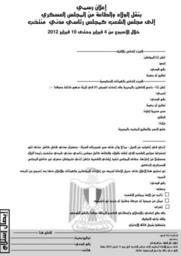 | Keywords: E3lan11feb2012.jpg ar إعلان رسمي بنقل الولاء والطاعة من المجلس العسكري لمجلس الشعب المصري كمجلس رئاسي منتخب خلال الأسبوع من 4 فبراير وحتى 10 فبراير 2012 2012-02-04 own Opensourceit السلام عليكم جميعا أيها الأساتذة والزملاء الأفاضل، كما ترون، فقد سرت الدعوة للإضراب والعصيان المدني في مصر منذ أيام أرجو قراءة الاقتراح المرفق فورا، ودراسته سريعا اليوم، واتخاذ القرار بشأنه في أسرع وقت، إن رأيتم جدواه شكرا جزيلا لينجح الإضراب أعلن تسليم ولائك لمجلس الشعب كمدلس رئاسي مدني حتى يكون الإضراب/العصيان المدني الشعبي في مصر لتسليم السلطة حلا كاملا للأزمة لابد معه من إعلان تسليم ولاء لسلطة مدنية بديلة إعلان ولاء من كل وزارة أو قطاعات وراء قطاعات داخل جميع الوزارات بمديرياتها بما فيها وزارة الدفاع والداخلية وجميع مرافق البلاد بهذا تكون البلد كلها سلمت السلطة لجهة مدنية منتخبة شرعية بديلة وهي مجلس الشعب باعتباره المجلس الرئاسي المدني الشرعي المنتخب وعدم طاعة أي أوامر تصدر من المجلس العسكري إلا بعد مصادقتها من مجلس الشعب باعتباره المجس الرئاسي المدني الشرعي الوحيد هذا نموذج إعلان ولاء توقيع للهيئات الحكومية والوزارات بمكان لختم النسر ومكان إمضاء مدير المديرية، ومعه في نفس الورقة نموذج لأفراد المواطنين برقم البطاقة والهاتف والتوقيع أو البصمة لكل مواطن، ويتم تسليمها إلى أعضاء مجلس الشعب - أو لفروع الجمعية الوطنية للتغيير أو حركة 6 أبريل أو غيرها من الحركات والمنظمات الوطنية الموثوق في أمانتها والتي قادت الدعوة لهذه الثورة، وفروعها في المحافظات على سبيل الأمانة ويظل كعب التسليم مع المواطن أو رئيس الهيئة، وذلك من اليوم وحتى 10 فبراير حين يقوم مجلس الشعب بحصر الاستمارات - بعد أن تكون كل جهة شعبية حصرت الوارد إليها على حدة - وإعلان استلام السلطة من الشعب في يوم 11 فبراير ابدأ الان فأمام مصر ستة أيام فقط للانتهاء من تجميع الإعلان الشعبي الكامل لنقل السلطة دورك كفرد طبع ونشر وتوزيع الإعلان بكل حماس لكل الناس حولك بالايميل والمحمول والبلوتوث وفي الصحف والشارع دورك كنائب برلمان أو حركة أو حزب أو منظمة إصدار بيان فوري الآن بتبني الإعلان وتحمل مسؤولية توزيع واستلام وجمع الإعلانات من المواطنين، لتسليمها لمجلس الشعب الشرعي يوم 10 فبراير نص الإعلان ____________________________ إعلان رسمي بنقل الولاء والطاعة من المجلس العسكري لمجلس الشعب كمجلس رئاسي منتخب خلال الأسبوع من 4 فبراير وحتى 10 فبراير 2012 ----------------------الجزء الخاص بالأفراد--------------------------------------- أعلن أنا المواطن اسم رقم قومي توقيع أو بصمة ----------------------الجزء الخاص بالهيئات الحكومية---------------------- أعلن أنا - باسم العاملين بالمديرية وقد أخذت تفويض 51 في المئة منهم كتابة وموقعا - اسمي رقم قومي توقيع أو بصمة مدير مديرية/إدارة قطاع وزارة ختم النسر والتوقيع المعتمد بالمديرية ---------------------- أنني في إضراب عن العمل - بما لا يؤثر على سير ضروريات الحياة بمصر - وعصيان مدني شامل كامل، حتى تتم استجابة مجلس الشعب الذي أعلنه بالولاء والطاعة كأول مجلس رئاسي مدني شرعي منتخب رئيسا للبلاد ومسؤولا عن إدارتها، واستجابة كافة الوزارات بما فيها وزارة الدفاع والقوات المسلحة وعلى المجلس تنفيذ إرادتي الشعبية وأعلن أنني كمواطن مصري غير خاضع للمجلس العسكري الحاكم تم تسليم هذا الإعلان - على سبيل الأمانة لجمعه مع إعلانات المواطنين والهيئات والإعلان عنها بعد أسبوع من تاريخه - للسيد رقم قومي وصفته نائب عن الأمة بمجلس الشعب ممثل عن جمعية أو حركة وطنية أو حزب تم تاسيسه أخرى اذكرها وقد وقع أمامي بالاستلام وأعطاني الكعب المرفق موقعا برقمه القومي وهاتفه والله ولي التوفيق وتفضلوا بقبول فائق الاحترام إيصال استلام استلمت أنا اسم بصفتي إعلان نقل الولاء من المواطن على سبيل الأمانة لتسليمه إلى مجلس الشعب قبل يوم 11 فبراير 2012 وهذا إقرار مني بذلك وأتحمل المسؤولية كاملة توقيع/بصمة ----------------------------------------
