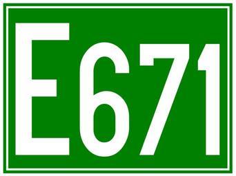 Keywords: E671-RO.svg en Sign of E671 in Romania with official font SNV Condensed Own Rl91 2010-08-17 Diagrams of route signs of Romania E671 Diagrams of European road signs of Romania