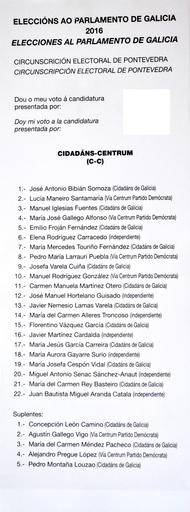 | Keywords: E. ao Parlamento de Galicia 2016. C. E. de Pontevedra. C-C.jpg gl Eleccións ao Parlamento de Galicia 2016 Circunscrición Electoral de Pontevedra 2016-09-25 13 58 01 own HombreDHojalata other versions cc-zero PD-SpanishGov es se borro el logotipo del partido político por copyright borrouse o logotipo do partido político por copyright Ballot papers for the 2016 Galician parliamentary election for the province of Pontevedra All medias supported by Wikimedia España in 2016 | ||||