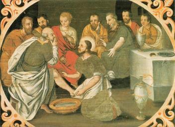 | Keywords: E Brentel - 1. Empore Mistelbach, Fußwaschung.jpg de Fußwaschung 1632 eingescannt aus Herbert Klug Evang -Luth Pfarrkirche St Bartholomäus Mistelbach Bayreuth Oberfränkischer Ansichtskartenverlag Bouillon o J ca 1998 Creator Elias Brentel other versions Custom license marker 2015 01 27 PD-old-100 Uploaded with UploadWizard Paintings on 1st gallery of Saint Bartholomew Church Mistelbach | ||||