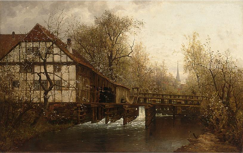 | Keywords: E. Gertner - Wassermühle an einem Bach.jpg Artwork E Gertner LangSwitch Deutsche Schule German School century 19 de Wassermühle an einem Bach 1893 oil canvas cm 73 117 object history credit line signed E Gertner and dated 1893 lower center accession number http //www sothebys com/de/auctions/ecatalogue/2007/an-important-private-collection-from-hanover-am1020/lot 275 html Sotheby's PD-old-auto-1923 1903 Paintings of watermills Landscape paintings of Germany 1893 paintings Images from Sotheby's 1890s landscape paintings |